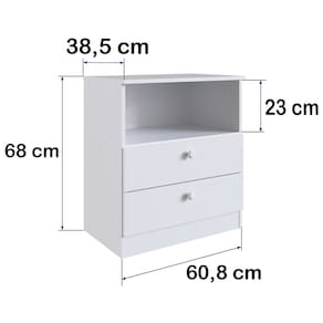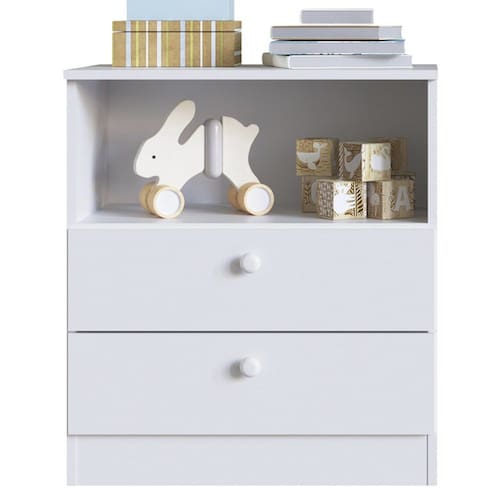 Comoda 02 Gav E Nichos LA005 Comm é versátil, prática e elegante. Estrutura em MDP de 15 mm, e excelente acabamento em Finish Foil (Fosco). Composta por 02 gavetas com corrediças metálicas, 01 prateleira, nicho, puxadores plásticos e acompanha sapatas. Gavetas suportam até 3 kg cada, a prateleira e o nicho suportam 5 kg distribuídos. É ideal para o quarto do seu bebê, facilitando e otimizando o espaço e o aconchego para ao ambiente. Este móvel chegará em sua casa separado em 01 volume.