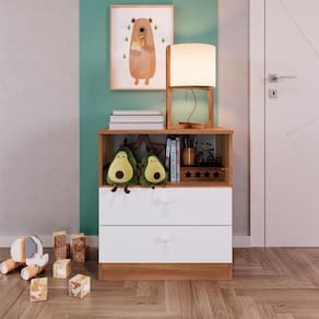 Comoda 02 Gav E Nichos LA005 Comm é versátil, prática e elegante. Estrutura em MDP de 15 mm, e excelente acabamento em Finish Foil (Fosco). Composta por 02 gavetas com corrediças metálicas, 01 prateleira, nicho, puxadores plásticos e acompanha sapatas. Gavetas suportam até 3 kg cada, a prateleira e o nicho suportam 5 kg distribuídos. É ideal para o quarto do seu bebê, facilitando e otimizando o espaço e o aconchego para ao ambiente. Este móvel chegará em sua casa separado em 01 volume.