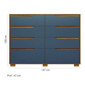 Características Estrutura em MDP Pintura UV 08 Gavetas com Corrediças Telescópicas Puxadores Usinados Amplo Espaço Pés em PVC para Facilitar a Limpeza