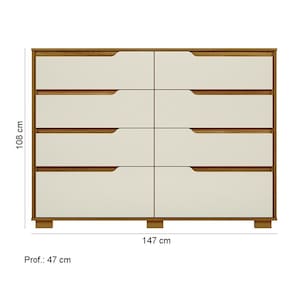 Características Estrutura em MDP Pintura UV 08 Gavetas com Corrediças Telescópicas Puxadores Usinados Amplo Espaço Pés em PVC para Facilitar a Limpeza