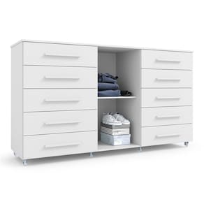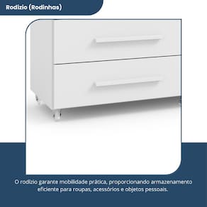 As cômodas Batrol são ideais para quem tem espaço mais restrito e precisa de um local para guardar e organizar objetos. Na maioria das vezes, as cômodas ainda podem substituir ou complementar móveis maiores, como guarda-roupas ou armários, abrindo espaço físico e visual no ambiente. Produto Montado: Sim Acabamento da Gaveta: Pintura UV Acabamento da Porta: Pintura UV Acabamento da Prateleira: Pintura UV Ambiente Principal: Quarto codigo_ean: 7900288191878 Complexidade da Montagem: Média: pode ser montado por mais de uma pessoa e/ou necessite de maior conhecimento para montagem Cor: Branco Cor do Produto: Branco Cor Interna: Branco Escala de Brilho: Brilhante Escala de Brilho da Porta: Fosco Escala de Brilho da Prateleira: Fosco Gaveta com Chave: Não Itens Inclusos: 1 Cômoda, Kit Ferragens e Manual de Montagem Linha ou Coleção: Imperial Manual de Montagem e Instalação: https://product-hub-prd.madeiramadeira.com.br/174139655/documents/98a58099-266f-4249-80cb-cb6c034619553013381464117507094356941.pdf Marca: Batrol Móveis Material da Gaveta: MDP Material da Porta: MDP Material da Prateleira: MDP Material do Fundo: HDF Material dos Pés: Silicone Material Principal: MDP Necessita Montagem: Sim Origem do Produto: Nacional Peso: 75,6 kg Peso Máximo por Gaveta: 5 kg Peso Máximo por Prateleira: 5 kg Possui Espelho: Não Possui Nichos: Não Possui Pés: 08 Possui Portas: Sim Possui Prateleiras: Sim Possui Rodízio: Sim Quantidade de Gavetas: 10 Gavetas Quantidade de Prateleiras: 01 Prateleira Recomendações de Uso, Manutenção e Limpeza: Pano úmido Rodízio com Trava: Sim Sapatas Niveladoras: Não Sistema de Montagem: Parafusos e Cavilhas Suporta Até (kg): 60 kg Tipo de Cômoda: Adulto Tipo de Corrediça da Gaveta: Metálica Telescópica Tipo de Dobradiça/Corrediça da Porta: Aço Tipo de Porta: Bater Tipo de Puxador da Gaveta: Externo Tipo de Puxador da Porta: Externo
