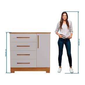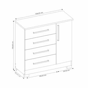 A Cômoda NT 5185 da Notável Móveis vai ser uma ótima auxiliar na organização do seu quarto, conta com 4 gavetões com corrediças telescópicas e uma porta com duas prateleiras internas, tudo isso para acomodar seus pertences da melhor forma possível. Conta com puxadores modernos em ABS e tampo de 25mm, oferecendo resistência e durabilidade para o móvel.