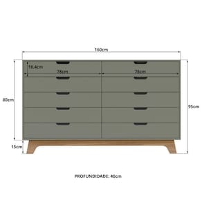 Cor: Verde | Quantidade de Gavetas: 10 | Altura: 95 | Classificação da Cama: Solteiro | Produto: Cômoda 10 Gavetas Alice | Portátil: Não | Largura: 160 | Tamanho: 95x160x40 | do modelo: 1 | Peso do Produto: 58,59 | Tonalidade: Verde