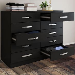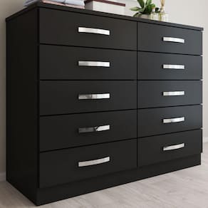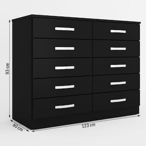 O(a) Cômoda 10 Gavetas Dunas Preto - Pnr Móveis é produzido em MDP na escala de brilho Fosco, e possui um grau de dificuldade de montagem: Médio.