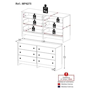 Conteúdo da Embalagem: 1 (uma) Cômoda Manual de Montagem Kit Ferragem