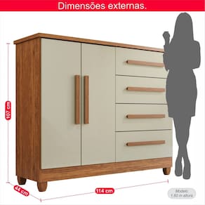 Cômoda 2 Portas 4 Gavetas Madri Plus Com Sapateira - Tudo de Móveis A Cômoda Madri é uma excelente opção para quem busca organização e estilo sem ocupar muito espaço. Com estrutura em MDP de 15mm, portas articuladas com dobradiças metálicas, pés cônicos de série, gavetas com corrediça telescópica e puxadores em MDF, ela oferece durabilidade e praticidade. Além disso, tem duas opções de montagem e um tampo de 20mm, proporcionando um acabamento sofisticado com revestimento UV. Perfeita para otimizar seu ambiente, essa cômoda conta com 4 gavetas, ideais para manter suas roupas organizadas e o dormitório ainda mais charmoso e funcional. Especificações: Peso do produto: 41,400 kg Altura: 107 cm Largura: 114 cm Profundidade: 44 cm Material da estrutura: MDP Necessita Montagem: SIM Informações importantes: A Loja Tudo de Móveis não e responsável pela montagem do móvel, todos os produtos acompanham manual de montagem, a montagem é de exclusiva responsabilidade do adquirente. É imprescindível a contratação de um montador profissional para montar o produto. Não nos responsabilizamos por danos de qualquer natureza causados no produto pela montagem. Produtos podem apresentar diferenças de tonalidades entre a foto na tela e o produto real, devido a calibração de cor da tela. Os objetos decorativos que ambientam as fotos não são vendidos e não acompanham o produto. Favor confira se todos os volumes que constam na nota, foram descarregados. E verifique se as embalagens estão em boas condições no momento da entrega. A Loja Tudo de Móveis e o serviço de transporte não se responsabilizam por produtos que precisem subir escadas, ou serem içados para algum andar superior e não realizam tais serviços, ou seja, é de responsabilidade do cliente. Verifique as dimensões do produto antes de finalizar a compra Marca: TopDecorMobile