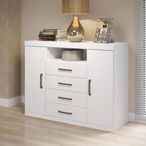 A Cômoda Master possui design contemporâneo e dinâmico, que pode deixar o cômodo bem mais moderno e funcional. Sabe como? Graças aos detalhes que fazem toda a diferença! Sim, essa cômoda para quarto possui 2 portas sendo uma em cada extremidade, 4 gavetas com corrediça metálicas, amplo espaço interno e nicho central com passa fios para aparelhos eletrônicos, itens decorativos ou objetos pessoais. Ah, e fabricado em MDP com acabamento envernizado e puxadores em ABS, para conferir durabilidade e resistência. Nossa, com tantos benefícios assim fica difícil recusar né?