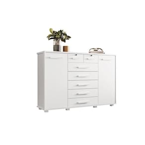 A Cômoda Fontana é moderna e robusta. Possui 7 gavetas com corrediças telescópicas, sendo as duas menores com chaves e 2 portas, uma com cabideiro e outra com prateleiras. Um produto bem distribuído e completo que irá compor seu quarto. Produto Montado: Sim Acabamento da Gaveta: Pintura UV Acabamento da Porta: Pintura UV Acabamento da Prateleira: Pintura UV Altura dos Pés: 5 cm Altura Máxima dos Pés: 5.0000 Ambiente Principal: Quarto codigo_ean: 7908308760295 Complexidade da Montagem: Alta: deve ser montado por um montador especializado Cor: Branco Cor do Produto: Branco Cor Interna: Branco Escala de Brilho: Fosco Escala de Brilho da Gaveta: Fosco Escala de Brilho da Porta: Fosco Escala de Brilho da Prateleira: Fosco Gaveta com Chave: Sim Informações Complementares: As duas gavetas menores com chaves e suportam até 3 Kg. Itens Inclusos: 1 Cômoda, Kit Ferragens e Manual de Montagem Linha ou Coleção: Albatroz Manual de Montagem e Instalação: https://product-hub-prd.madeiramadeira.com.br/836512/documents/1345f763-e0b1-460f-82c3-c931a15247ba655esquema112comodafontana.pdf Material da Gaveta: MDP Material da Porta: MDP Material da Prateleira: MDP Material do Fundo: HDF Material do Puxador da Gaveta: MDF Material do Puxador da Porta: MDP Material dos Pés: ABS Material Principal: MDP Necessita Montagem: Sim Origem do Produto: Nacional Pés Reguláveis: Não Peso: 71,1 kg Peso Máximo por Gaveta: 5 kg Peso Máximo por Prateleira: 5 kg Possui Espelho: Não Possui Nichos: Não Possui Pés: 08 Possui Portas: Sim Possui Prateleiras: Sim Possui Rodízio: Não Quantidade de Gavetas: 07 Gavetas Quantidade de Prateleiras: 02 Prateleiras Recomendações de Uso, Manutenção e Limpeza: Limpar com flanela ou pano macio seco, não utilizar produtos abrasivos, desengordurantes, álcool ou solvente. Não expor o produto diretamente á luz solar e á umidade. Sapatas Niveladoras: Não Sistema de Montagem: Parafusos, Cavilhas e Minifix. Suporta Até (kg): 71 kg Tipo de Corrediça: Metálica Telescópica Tipo de Corrediça da Gaveta: Metálica Telescópica Tipo de Dobradiça/Corrediça da Porta: Metálica Tipo de Porta: Bater Tipo de Puxador da Gaveta: Externo Tipo de Puxador da Porta: Externo Ean: 7908308760295