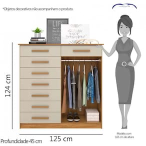 A Cômoda New Verona é um produto ideal para otimizar o espaço, pois é compacta. O produto tem oito gavetas e duas portas com cabideiro, para auxiliar na organização de roupas e Acessórios.
