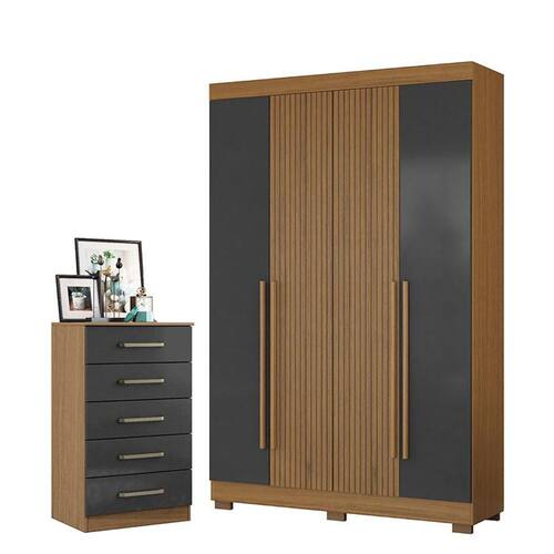Cômoda 2014140 e Guarda Roupa Solteiro 2030240 Atacama Grafite - Aramóveis