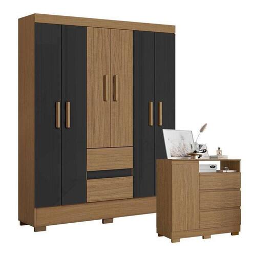 Cômoda 2014143 Atacama e Guarda Roupa Casal Coimbra 2005138 Atacama Grafite - Aramóveis