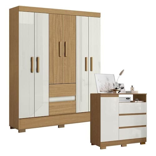Buscando conjunto de cômoda e guarda roupas ideal para deixar o quarto mais moderno e prático? Com design simples e atemporal, apresentamos a Cômoda 2014143 e o Guarda Roupa Casal Coimbra desenvolvidos pela Aramóveis, contam com amplo espaço interno para manter a organização das roupas, sapatos e outros pertences, confira e aproveite!