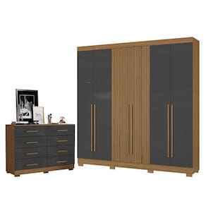 Cômoda 2014148 e Guarda Roupa Casal 2030230 Atacama Grafite - Aramóveis