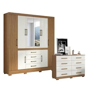 Cômoda 2014148 e Guarda Roupa Casal Nápole 2045149 Atacama Off White - Aramóveis