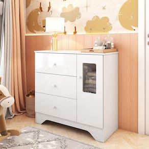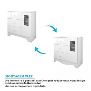 A Cômoda Infantil Ben é uma solução moderna para montar o quarto de bebê com estratégias inteligentes, qualidade e o melhor custo-benefício. É um produto em MDF e acabamento em pintura atóxica. Possui 1 porta com janela com vidro que permite visualizar o interior do móvel 1 prateleira e 3 gavetas com corrediças telescópicas. O produto possui um diferencia na montagem com diuas opções de rodapé para escolha no momento da montagem.