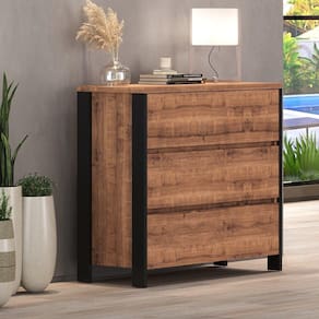 estilo industrial! Inclusive, conta com 3 gavetas de corrediças telescópicas, perfeita para guardar suas roupas e acessórios! Me diz, essa