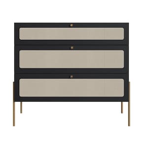 A Cômoda 3 Gavetas Oslo é confeccionada em MDP com acabamento BP, pés metálicos e aplique de tela sintética nas gavetas. Móvel multifuncional, conta com três gavetas para guardar acessórios e roupas tornando o espaço mais organizado. Traz como característica um traço artesanal, suave e acolhedor. Com design escandinavo minimalista, remete em suas linhas retas a simplicidade, charme e funcionalidade que sua casa merece. Composta com uma paleta de cores neutras, Nero é um acabamento ebanizado atemporal, para quem deseja fugir do tradicional sem perder a nobreza, sofisticação e elegância da madeira, tornando-se assim a opção ideal para um ambiente com toque sofisticado e ao mesmo tempo aconchegante. Acabamento da Gaveta: BP Acabamento dos Pés: Pintura Ambiente Principal: Quarto Complexidade da Montagem: Média: pode ser montado por mais de uma pessoa e/ou necessite de maior conhecimento para montagem Cor: Nero/Dourado Cor do Produto: Nero/Dourado Cor Interna: Preto Escala de Brilho: Fosco Escala de Brilho da Gaveta: Fosco Gaveta com Chave: Não Informações Complementares: Possui sapatas emborrachadas para evitar atrito do móvel com o piso. Sistema antitombamento, afim de evitar acidentes, consequentes da queda do móvel. Gavetas com aplique de tela Sintética (PVC com poliéster). O peso suportado considera a carga distribuí Itens Inclusos: 1 Cômoda, Kit Ferragens e Manual de Montagem Linha ou Coleção: Oslo Manual de Montagem e Instalação: https://product-hub-prd.madeiramadeira.com.br/826921/documents/99f12e9a-b3d0-4837-ad61-37aee06b390e1141802816693.pdf Material da Gaveta: MDP Material do Fundo: HDF 3mm Material do Puxador da Gaveta: Poliestireno Material dos Pés: Eucalipto Material Principal: MDP Necessita Montagem: Sim Origem do Produto: Nacional Peso: 24,65 kg Peso Máximo por Gaveta: 3 kg Possui Espelho: Não Possui Nichos: Não Possui Pés: 04 Possui Portas: Não Possui Prateleiras: Não Possui Rodízio: Não Quantidade de Gavetas: 03 Gavetas Recomendações de Uso, Manutenção e Limpeza: Limpar utilizando apenas pano umedecido com água, nunca utilizar produtos químicos ou abrasivos, pois estes danificam o revestimento do móvel. Sapatas Niveladoras: Não Sistema de Montagem: Fixação é feita por parafusos, minifix, cavilhas e pregos, possibilitando a desmontagem do produto sem danificá-lo Suporta Até (kg): 14 kg Tipo de Corrediça da Gaveta: Metálica Telescópica Tipo de Puxador da Gaveta: Externo
