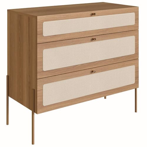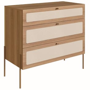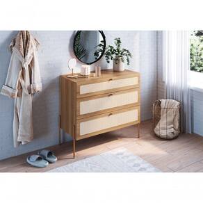 Cômoda 28934, Linha Oslo Artesano. Traz como característica um traço artesanal, suave e acolhedor. Possui estrutura em MDP de 15mm, acabamento em pintura BP na cor Hanover (Fosco), e Pés de tubo metálico em aço com pintura epóxi na cor dourada. Composta por 03 gavetas com corrediças telescópicas garantindo um abre e fecha leve e suave, puxadores de poliestireno na cor Dourado, aplique de tela sintética (PVC com poliéster), fixada na parte externa das gavetas, as extremidades dos pés possuem ponteiras plásticas para evitar atrito do móvel com o piso, conta com sistema anti-tombamento, afim de evitar acidentes, móvel com design escandinavo minimalista, é a opção ideal para um ambiente com toque sofisticado e ao mesmo tempo aconchegante. Mais produtos da Linha Oslo, você encontra em nosso site, podendo fazer a composição completa para sua casa, são diversos itens com design prático e funcional para tornar a vida mais facil e a casa mais alegre. Este móvel chegará em sua casa separado em 02 volumes.