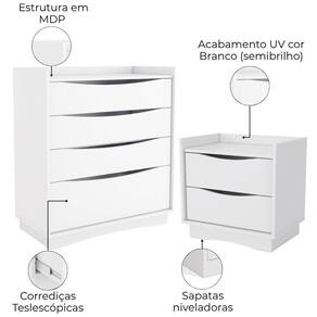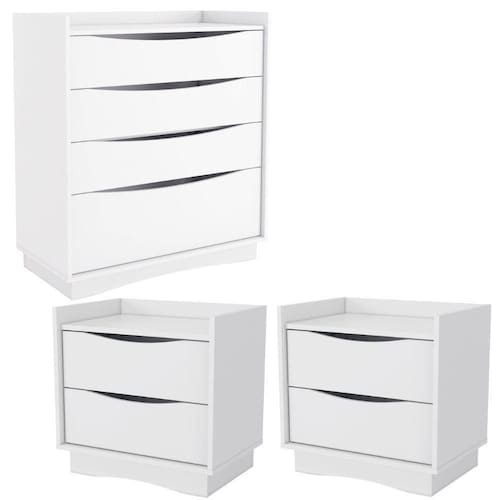 Conjunto composto por 1 cômoda M260 e 2 mesas de cabeceira M261, solução funcional para quartos com design moderno! Estrutura em MDP (15mm) com acabamento em pintura UV. Conta com 8 gavetas usinadas (sendo 3 gavetas e 1 gavetão na cômoda e 2 gavetas em cada mesa de cabeceira), corrediças telescópicas e sapatas niveladoras para maior facilidade no dia a dia. Ideais para compor quartos com organização e estilo. Estes produtos serão entregues em 03 volumes.