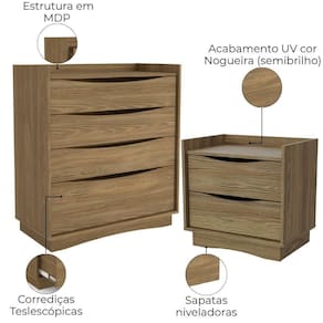 Conjunto composto por 1 cômoda M260 e 2 mesas de cabeceira M261, solução funcional para quartos com design moderno! Estrutura em MDP (15mm) com acabamento em pintura UV. Conta com 8 gavetas usinadas (sendo 3 gavetas e 1 gavetão na cômoda e 2 gavetas em cada mesa de cabeceira), corrediças telescópicas e sapatas niveladoras para maior facilidade no dia a dia. Ideais para compor quartos com organização e estilo. Estes produtos serão entregues em 03 volumes.