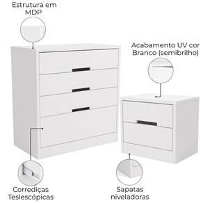 Conjunto composto por 1 cômoda S824 e 2 mesas de cabeceira S822, solução funcional para quartos com design moderno! Estrutura em MDP (15mm) com acabamento em pintura UV. Conta com 8 gavetas usinadas (sendo 3 gavetas e 1 gavetão na cômoda e 2 gavetas em cada mesa de cabeceira), corrediças telescópicas e sapatas niveladoras para maior facilidade no dia a dia. Ideais para compor quartos com organização e estilo. Estes produtos serão entregues em 03 volumes.