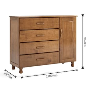 Dimensões da Cômoda 4 Gavetas em Madeira Maciça 120 cm: