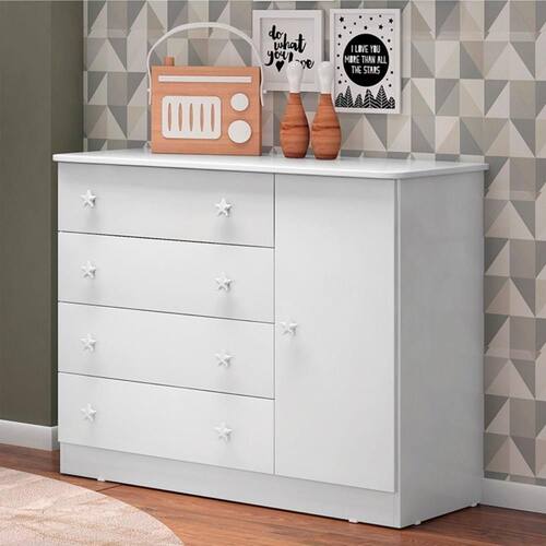 Ela possui 4 gavetas e 1 repartição que serve como sapateira, conferindo assim uma boa organização.