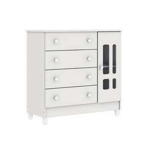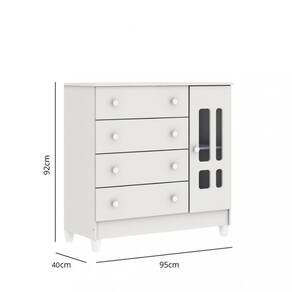 Características: Estrutura em MDF e MDP 1 Porta 4 Gavetas Pintura atóxica Pês em PVC Corrediças metálicas Dobradiças em aço