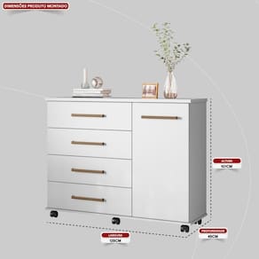 Cômoda Flora 1 Porta 4 Gavetas com Rodízios Demóbile