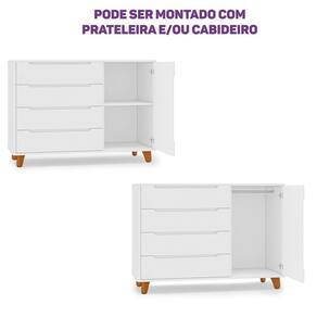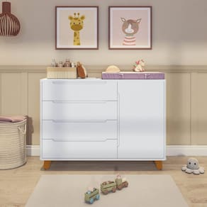 bebê. Produto Montado: Sim Acabamento da Gaveta: Pintura UV Acabamento da Porta: Pintura UV Acabamento da Prateleira: Pintura UV Acabamento dos Pés: Verniz Altura dos Pés: 10 cm Ambiente Principal: Quarto de Bebê codigo_ean: 7900288084620 Complexidade da Montagem: Média: pode ser montado por mais de uma pessoa e/ou necessite de maior conhecimento para montagem Cor: Branco Cor do Produto: Branco Escala de Brilho: Semi-Brilho Escala de Brilho da Gaveta: Semi-Brilho Escala de Brilho da Porta: Semi-Brilho Escala de Brilho da Prateleira: Semi-Brilho Gaveta com Chave: Não Itens Inclusos: 1 Cômoda, 1 manual de montagem e 1 kit ferragens Linha ou Coleção: Tubbi Manual de Montagem e Instalação: https://product-hub-prd.madeiramadeira.com.br/980338/documents/4ebd4d3d-aa9a-4a25-a738-fbbda8da2e8d2730970338717413757211658.pdf Marca: Casatema Material da Gaveta: MDF Material da Porta: MDF Material da Prateleira: MDF Material do Fundo: mdf Material dos Pés: Madeira Maciça Material Principal: MDF modular: Não Montagem Flex: Pode ser montado com cabideiro ou prateleira. Necessita Montagem: Sim Origem do Produto: Nacional Pés Reguláveis: Não Peso: 54 kg Peso Máximo por Gaveta: 3 kg Peso Máximo por Prateleira: 5 kg Possui Espelho: Não Possui Nichos: Não Possui Pés: 05 Possui Portas: Sim Possui Prateleiras: Sim Possui Rodízio: Não Possui Trocador: Não Quantidade de Gavetas: 04 Gavetas Quantidade de Prateleiras: 01 Prateleira Recomendações de Uso, Manutenção e Limpeza: Pano limpo e seco Sapatas Niveladoras: Não Sistema de Montagem: Minifix, cavilhas e parafusos Suporta Até (kg): 40 kg Tipo de Cômoda: Bebê Tipo de Corrediça da Gaveta: Metálica Telescópica Tipo de Dobradiça/Corrediça da Porta: Metálica Tipo de Madeira Maciça dos Pés: Pinus Tipo de Porta: Bater Tipo de Puxador da Gaveta: Embutido Tipo de Puxador da Porta: Embutido