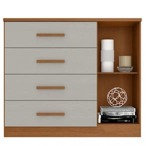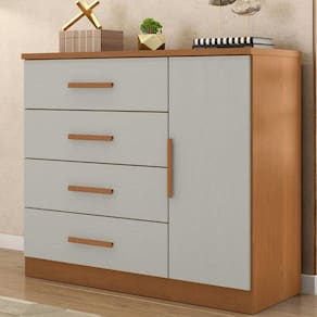 Cômoda 4 Gavetas 1 Porta Gênova Plus Zanzini - Cinza Claro