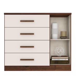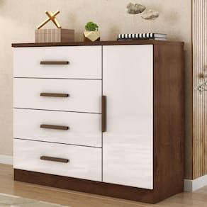 Conheça a Cômoda Gênova Plus, a solução perfeita para manter tudo organizado no seu espaço. Com quatro gavetas amplas e espaçosas, todas equipadas com corrediças metálicas, esta cômoda oferece praticidade e facilidade de acesso aos seus pertences. A porta adicional com prateleira interna proporciona espaço extra para acomodar sapatos, caixas, livros, bolsas e muito mais, mantendo tudo à mão e bem organizado.
