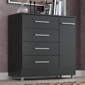 ÔMODA LAURA Com 4 gavetas e 1 porta com 1 prateleira, dispõe de um design sofisticado é própria para pessoas exigentes com organização. As gavetas possuem CORREDIÇAS METÁLICAS, fazendo assim com que a gaveta não caia na hora que você for utilizar, evitando acidentes com crianças. O móvel suporta pesos de até 7kg em suas gavetas e 20kg no tampo suficiente para acomodar televisores, além disso acompanha pezinhos para melhor limpeza e durabilidade do produto. As gavetas são espaçosas e comportam um bom volume de roupas e acessórios em seu interior. Possui acabamento Touch Alto-Relevo ou Alto Brilho UV e Semibrilho parte interna. Tem um design moderno que ao mesmo tempo atende muito bem as reais necessidades de uma ou duas pessoas.Altura 0,90m x Largura 0,825m x Profundidade 0,40m x Peso 28kgNão nos responsabilizamos pela montagem ou instalação do produto. Sugerimos a contratação de um serviço terceirizado de montagem ou de algum profissional experiente de sua preferencia.Imagem meramente ilustrativa