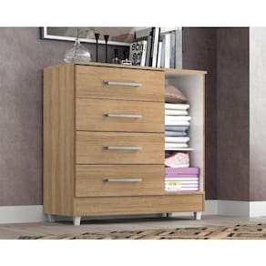 A cômoda Laura com 4 gavetas e 1 porta é um móvel versátil e prático projetado para oferecer espaço de armazenamento para roupas, acessórios e outros itens pessoais. Com suas gavetas e portas, oferece diferentes opções de organização. Além das gavetas, a cômoda Laura possui duas portas que podem ser abertas para revelar um espaço interno com 1 prateleira para guardar itens adicionais e contém uma superfície superior plana, que pode ser usada para colocar objetos decorativos, como vasos, porta-retratos ou Televisão. É importante verificar as dimensões da cômoda Laura antes da compra para garantir que ela se ajuste adequadamente ao espaço disponível em seu quarto ou ambiente desejado. Certifique-se de seguir as instruções de montagem para uma montagem correta e segura. Somente com a Laura você tem: • 4 gavetas com corrediças metálicas• 1 Porta com dobradiças metálicas.• Puxadores em PVC para facilitar a abertura e fechamento.• Suporta até 7kg em suas gavetas e 20kg no tampo.• Fabricado em MDP de 12mm e15mm.• Acabamento Touch Alto-Relevo ou Alto Brilho UV e Semibrilho parte interna.• Pés inclusos.• Acompanha manual de montagem. Dimensões aproximadas Altura 0,90m x Largura 0,825m x Profundidade 0,40cm x Peso 28 kg. Atenção! Confira as dimensões deste produto e certifique-se de que passará normalmente por supostos elevadores, portas, escadas e/ou corredores de sua moradia; As imagens são ilustrativas, eletrodomésticos e demais objetos que compõem o cenário, não fazem parte do anúncio; Sobre a tonalidade das cores, poderá ocorrer alterações conforme a configuração do seu monitor. Orientamos que a montagem e instalações do produto seja realizado por um técnico de sua confiança, após a sua entrega. Não nos responsabilizamos pela instalação/montagem. Fornecemos somente assistências, por defeitos de fábrica. Marca: Não Informado
