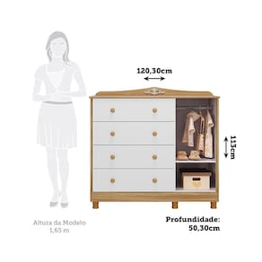 Cômoda 4 Gavetas 1 Porta MDF Noah Móveis Peroba - Branco