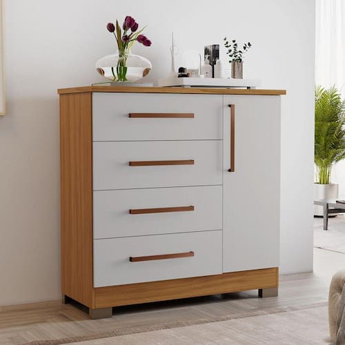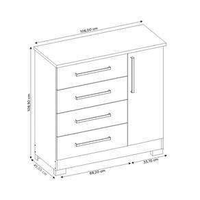 A Cômoda NT 5185 da Notável Móveis vai ser uma ótima auxiliar na organização do seu quarto, conta com 4 gavetas com corrediças telescópicas e uma porta com duas prateleiras internas, tudo isso para acomodar seus pertences da melhor forma possível. Conta com puxadores modernos em ABS e tampo de 25mm, oferencendo resistência e durabilidade para o móvel.