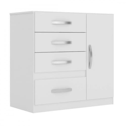A Cômoda Moval Vênus 4 Gavetas e 1 Porta é produzida em MDP, material resistente e de ótima qualidade. Possui acabamento UV, trazendo mais beleza e charme ao seu ambiente. Deixará seus pertences guardados de forma prática.