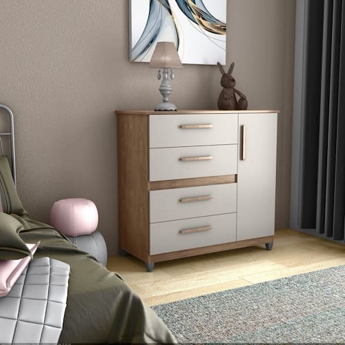 - 4 gavetas e 1 porta, proporcionando mais opções de armazenamento.