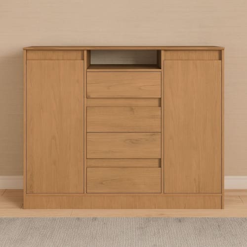 A Cômoda 4 Gavetas 2 Portas Alba da Móveis Castro une funcionalidade e sofisticação. Produzida em MDP com fundos em MDF 3mm e acabamento em pintura U.V., garante resistência e durabilidade. Possui 4 gavetas com corrediças telescópicas de abertura suave, 2 portas, 2 prateleiras internas e 1 nicho, oferecendo ótima distribuição para organizar roupas e objetos. Os tampos, portas e gavetas com acabamento em 45º agregam modernidade ao design, tornando-a ideal para compor ambientes funcionais e elegantes.
