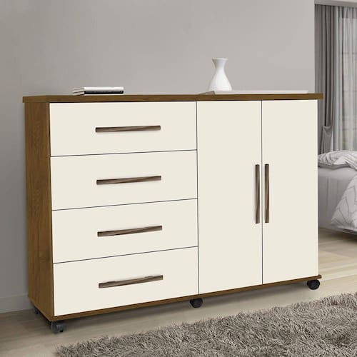 A cômoda Sapateira Bali é a peça ideal para quem busca elegância e funcionalidade em um único produto. Com quatro gavetas, todas com corrediças telescópicas e travas na parte de baixo possui um ótimo espaço para organização de roupas e objetos pessoais. A sapateira é ótima para guardar sapatos e outros objetos de uso pessoal, conforme a necessidade. O destaque do design dá um contraste sofisticado ao ambiente. A cômoda Bali é feita em MDP e possui 6 rodízios assim facilitando a locomoção e limpeza. Produto Montado: Sim Acabamento da Gaveta: Pintura Texturizada UV Acabamento da Porta: Pintura Texturizada UV Acabamento da Prateleira: Pintura Texturizada UV Acompanha a Almofada: Não Ambiente Principal: Quarto codigo_ean: 7908167271925 Complexidade da Montagem: Baixa: pode ser montado por uma pessoa sozinha Cor: Mel/Pérola Cor do Produto: Mel/Pérola Cor Interna: Mel Escala de Brilho: Semi-Fosco Escala de Brilho da Porta: Semi-Fosco Escala de Brilho da Prateleira: Semi-Fosco Gaveta com Chave: Não Itens Inclusos: 1 Cômoda e Manual de montagem Manual de Montagem e Instalação: https://product-hub-prd.madeiramadeira.com.br/596142/documents/ae08e33a-6b7d-4030-beb7-bb9d4a1c097fcf181f33ed563163comodabali.pdf Material da Gaveta: MDP Material da Porta: MDP Material da Prateleira: MDP Material do Fundo: MDF Material do Puxador: Plástico Material do Puxador da Gaveta: Plástico Material do Puxador da Porta: Plástico Material dos Pés: Plástico Material Principal: MDP Necessita Montagem: Sim Origem do Produto: Nacional Pés Reguláveis: Não Peso: 52,5 kg Peso Máximo por Gaveta: 4 kg Peso Máximo por Prateleira: 6 kg Possui Espelho: Não Possui Nichos: Não Possui Pés: 06 Possui Portas: Sim Possui Prateleiras: Sim Possui Rodízio: Sim Possui Trocador: Não Quantidade de Gavetas: 04 Gavetas Quantidade de Prateleiras: 01 Prateleira Recomendações de Uso, Manutenção e Limpeza: Pano úmido e água Rodízio com Trava: Não Sapatas Niveladoras: Não Sistema de Montagem: Parafusos, minifix, cavilhas e pregos Suporta Até (kg): 15 kg Tipo de Corrediça da Gaveta: Metálica Telescópica Tipo de Dobradiça/Corrediça da Porta: Metálica Tipo de Porta: Bater Tipo de Puxador da Gaveta: Externo Tipo de Puxador da Porta: Externo