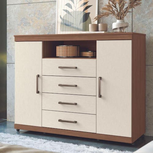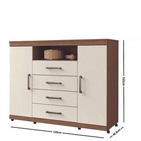 Cômoda 4 Gavetas 2 Portas com Rodizio Havana Master Santos Andira - Bege