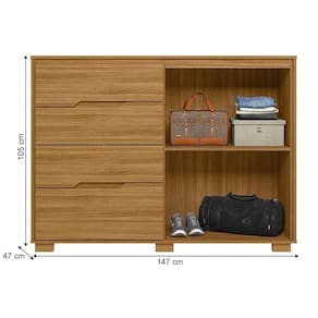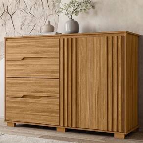 A cômoda Texas é um móvel versátil e elegante, oferecendo características que combinam organização e design ao seu ambiente, com 4 gavetas e 2 portas ripadas.