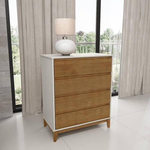 Cômoda 4 Gavetas 4 Pés Off White/Freijó Prata Madeira Pinus com MDF - Finestra