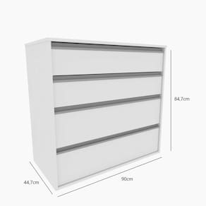 Esta cômoda da Nova Mobile possui 4 gavetas, com design contemporâneo e cores diferenciadas que se harmonizam facilmente com todos os estilos de ambientes. Produto com alta resistência desenvolvido 100% em MDF, com o objetivo de atender todas as suas necessidades! Acabamento da Gaveta: Pintura UV Ambiente Principal: Quarto codigo_ean: 7909903003756 Complexidade da Montagem: Baixa: pode ser montado por uma pessoa sozinha Cor: Branco Cor do Produto: Branco Cor Interna: Branco Escala de Brilho: Fosco Escala de Brilho da Gaveta: Fosco Itens Inclusos: 1 Cômoda, Kit Ferragens e Manual de Montagem Manual de Montagem e Instalação: https://product-hub-prd.madeiramadeira.com.br/714087/documents/f69435b4-5f21-4a31-adbc-d33c5c0cc434463865211co19cmoda4gavetas.pdf Material da Gaveta: MDF Material do Fundo: MDF Material Principal: MDF Necessita Montagem: Sim Origem do Produto: Nacional Peso: 33 kg Peso Máximo por Gaveta: 4 kg Possui Espelho: Não Possui Portas: Não Possui Prateleiras: Não Quantidade de Gavetas: 04 Gavetas Recomendações de Uso, Manutenção e Limpeza: Para a limpeza do móvel utilizar uma flanela seca. Sistema de Montagem: Parafusos, cavilhas e minifix Suporta Até (kg): 21 kg Tipo de Corrediça da Gaveta: Metálica Simples Tipo de Gaveta: Externa Tipo de Puxador da Gaveta: Embutido Ean: 7909903003756
