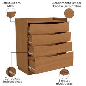 Mesa Cômoda M260, solução funcional com design inteligente. Estrutura em MDP (15mm) com acabamento em pintura UV. Acompanha sapatas niveladoras e 4 gavetas usinadas (sendo 1 gavetão) equipadas com corrediças telescópicas, para maior facilidade no dia a dia. Este produto será entregue em 01 volume.