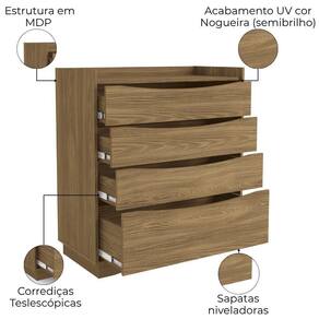 Mesa Cômoda M260, solução funcional com design inteligente. Estrutura em MDP (15mm) com acabamento em pintura UV. Acompanha sapatas niveladoras e 4 gavetas usinadas (sendo 1 gavetão) equipadas com corrediças telescópicas, para maior facilidade no dia a dia. Este produto será entregue em 01 volume.