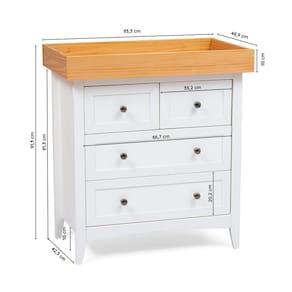 A cômoda infantil da linha Frame, é um móvel ARTEMOBILI, produzido 100% em madeira maciça de reflorestamento. Possui 04 gavetas, com puxadores metálicos, na cor ouro velho. Destaca-se pelo trocador opcional, que pode ser montado ou não, conforme necessidade. Acabamento da Gaveta: Pintura UV Acabamento dos Pés: Pintura Altura dos Pés: 8,25 cm Ambiente Principal: Quarto Infantil Complexidade da Montagem: Baixa: pode ser montado por uma pessoa sozinha Cor: Branco/Carvalho Cor do Produto: Branco/Carvalho Cor Interna: Branco Escala de Brilho: Fosco Escala de Brilho da Gaveta: Semi-Brilho Gaveta com Chave: Não Itens Inclusos: 1 Cômoda, Kit Ferragens e Manual de Montagem Linha ou Coleção: Nest Manual de Montagem e Instalação: https://cdn2.madeiramadeira.com.br/atributo/artemobili/685769-63176-sem-emblemas-argos.pdf Material da Gaveta: Madeira Maciça Material do Fundo: MDF Material do Puxador da Gaveta: Metal Material dos Pés: Madeira Maciça Material Principal: Madeira Maciça Necessita Montagem: Sim Origem do Produto: Nacional Pés Reguláveis: Não Peso: 28 kg Peso Máximo por Gaveta: 10 kg Possui Espelho: Não Possui Nichos: Não Possui Pés: 04 Possui Portas: Não Possui Prateleiras: Não Recomendações de Uso, Manutenção e Limpeza: Pano levemente umedecido. Não utilizar materiais abrasivos. Sapatas Niveladoras: Não Sistema de Montagem: Parafusos, Cavilhas e Minifix Suporta Até (kg): 50 kg Tipo de Corrediça da Gaveta: Metálica Simples Tipo de Madeira Maciça: Pinus Tipo de Madeira Maciça da Gaveta: Pinus Tipo de Madeira Maciça dos Pés: Pinus Tipo de Puxador da Gaveta: Externo Ean: 7909903406410
