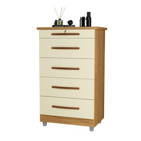 A cômoda Emas é linda e compacta, conta com 5 gavetas com corrediças telescópicas, sendo uma delas com chave, ideal para guardar seus objetos pessoais importantes da melhor maneira e com segurança. Seu design moderno com pés modelo Milão agregará ainda mais beleza em seu ambiente. Acabamento da Gaveta: Pintura UV Ambiente Principal: Quarto codigo_ean: 7909903353264 Complexidade da Montagem: Baixa: pode ser montado por uma pessoa sozinha Cor: Mel/Pérola Cor do Produto: Mel/Pérola Escala de Brilho: Brilhante Gaveta com Chave: Sim Itens Inclusos: 1 Cômoda, Kit Ferragens e Manual de Montagem Manual de Especificação Técnica: https://product-hub-prd.madeiramadeira.com.br/858699/documents/1abe5620-fb74-4530-bafc-2567a7d1f6771399372comodaemas.pdf Manual de Montagem e Instalação: https://product-hub-prd.madeiramadeira.com.br/858699/documents/024f5451-111e-4296-b6c0-c510d1f5b0461399370comodaemas.pdf Material da Gaveta: MDP Material do Fundo: MDF Material dos Pés: Plástico Material Principal: MDP Necessita Montagem: Sim Origem do Produto: Nacional Peso: 32,3 kg Peso Máximo por Gaveta: 4 kg Possui Espelho: Não Possui Nichos: Não Possui Pés: 04 Possui Portas: Não Possui Prateleiras: Não Possui Rodízio: Não Recomendações de Uso, Manutenção e Limpeza: Utilizar pano úmido Sapatas Niveladoras: Não Sistema de Montagem: Parafusos, mini fix, cavilhas e prego Suporta Até (kg): 25 kg Tipo de Corrediça: Metálica Telescópica Tipo de Corrediça da Gaveta: Telescópica Tipo de Puxador da Gaveta: Externo