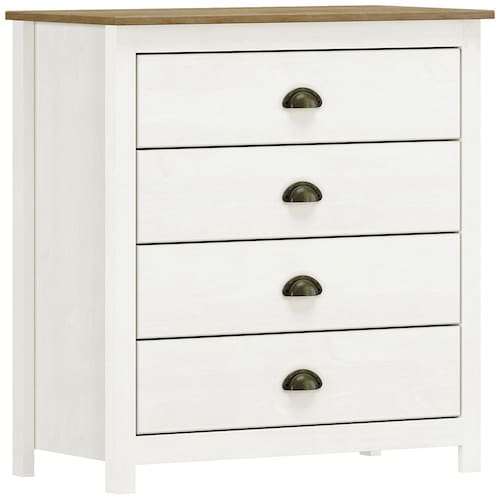 Cômoda projetada para quem busca um móvel sofisticado e atemporal. Com 80cm de largura e produzida em madeira maciça de pinus de reflorestamento, sua estrutura robusta garante durabilidade e resistência. Seu acabamento com pintura acetinada em verniz PU e UV realça a beleza natural da madeira enquanto protege contra desgastes do dia a dia. O design funcional inclui 04 gavetas com corrediças telescópicas, permitindo uma abertura suave e silenciosa, puxadores metálicos no estilo concha que agregam um charme artesanal, e pés alongados em madeira que trazem leveza e sofisticação ao móvel. Este móvel chegará em sua casa separado em 01 volume.