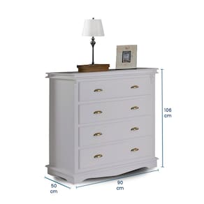 Ideal pra você que busca elegância e praticidade e deseja inovar na decoração do seu quarto a Cômoda para Quarto 4 Gavetas Manchester é o móvel ideal! Produzida em Madeira Maciça para tons amadeirados em verniz e MDF nos tons coloridos com acabamento laca, a cômoda de madeira garante qualidade e durabilidade, para que você possa aproveitar ela por muitos anos. Além disso a cômoda retro possui um lindo tampo com estilo duplo perfeito para colocar aquele lindo porta retrato, abajur e demais pertences, 4 gavetas com puxadores metálicos e corrediças telescópicas, ideal para organização dos seus objetos mantendo muito bem organizado.